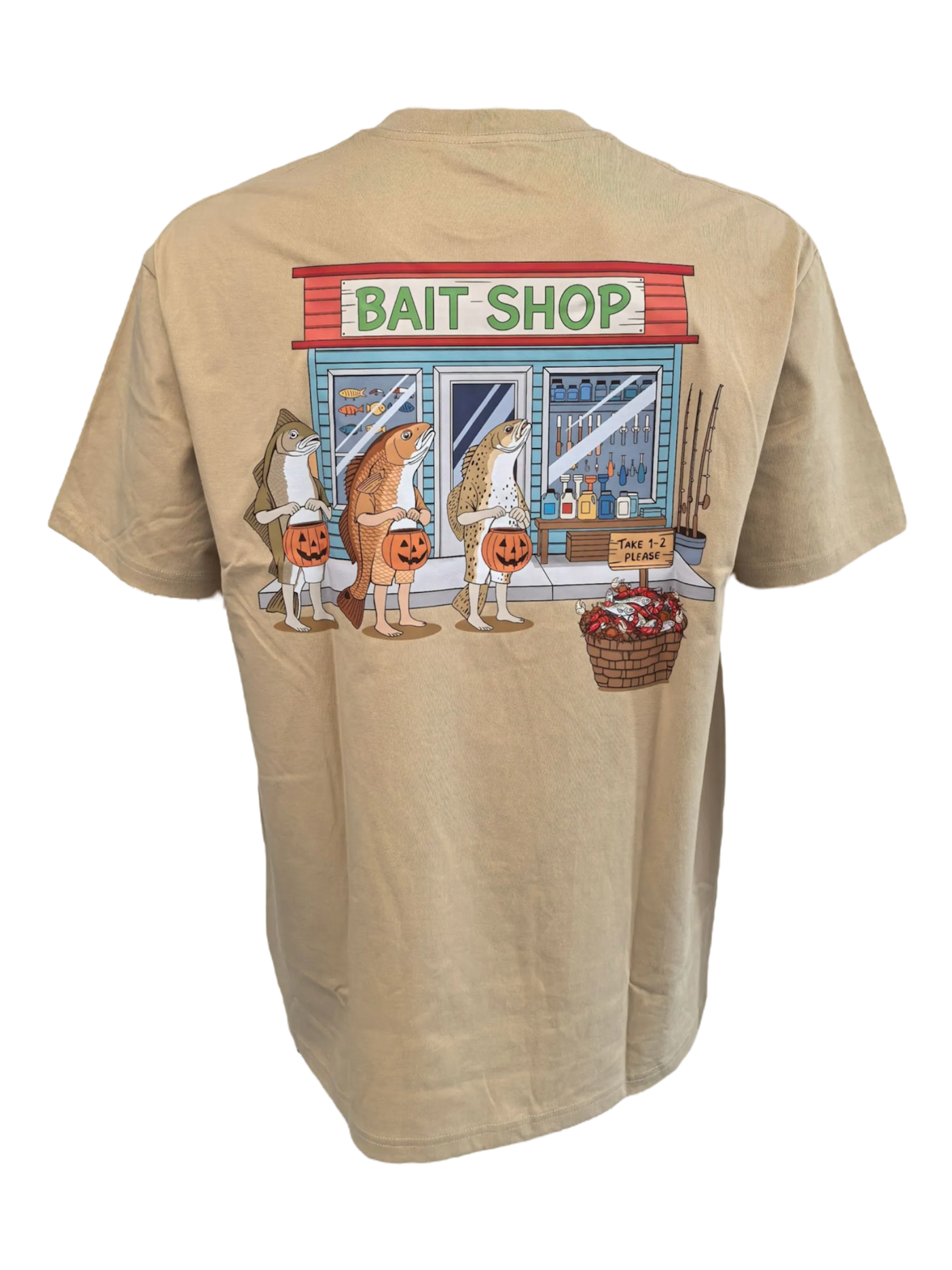 - Bringing a little humor to the water with our ‘Trick or Treat’ Tee. Featuring a playful back graphic of trick-or-treating fish stopping by the local bait shop, this shirt mixes fishing culture with a touch of seasonal fun. Made from soft, breathable cotton, its perfect for days on the boat, around town, or hanging at the dock.